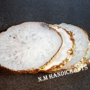 White Agate Coasters Set of 4 Gold or Silver Electroplated, Handmade Coaster, Table Coaster, Home Decor