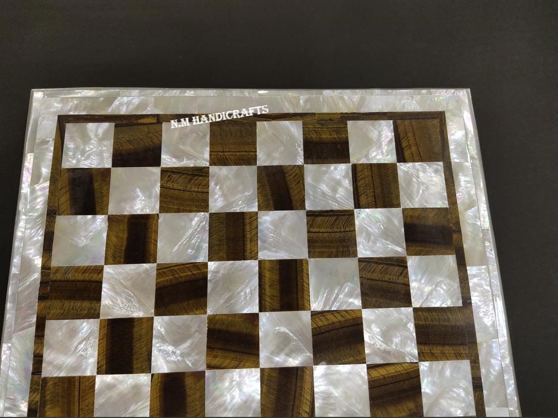 • Chess Board is hand carved of single piece of Natural Indian Marble & then hand inlaid with mother of pearl and Abalone Shell.